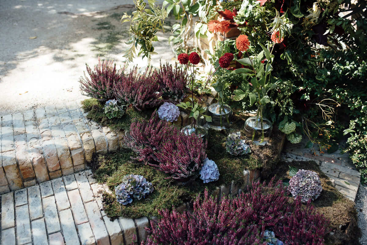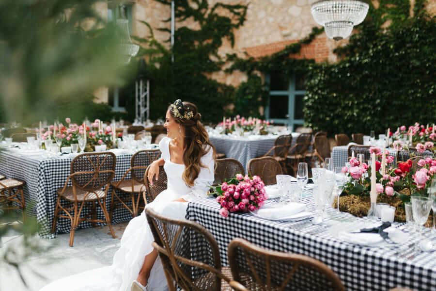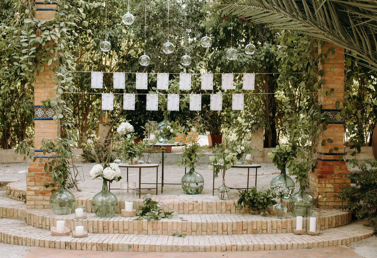 Lo ideal es contactar con 6 a 9 meses de antelación, especialmente si vuestra boda coincide con la temporada alta en la provincia (mayo a octubre). Esto nos permite asegurar la disponibilidad de las variedades florales elegidas y diseñar un concepto que se adapte perfectamente al espacio seleccionado.